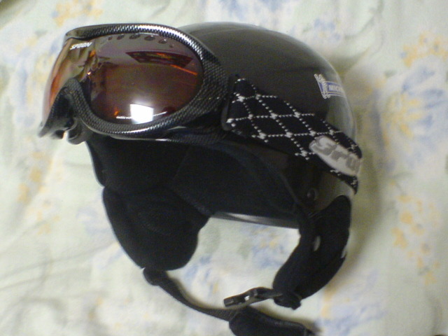 ニット帽を耳までかぶって、その上に耳あて付いてるメットなんで、