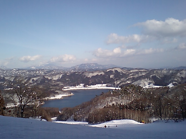 ゲレンデ上部からは、青木湖からお向かいのヤナバスキー場