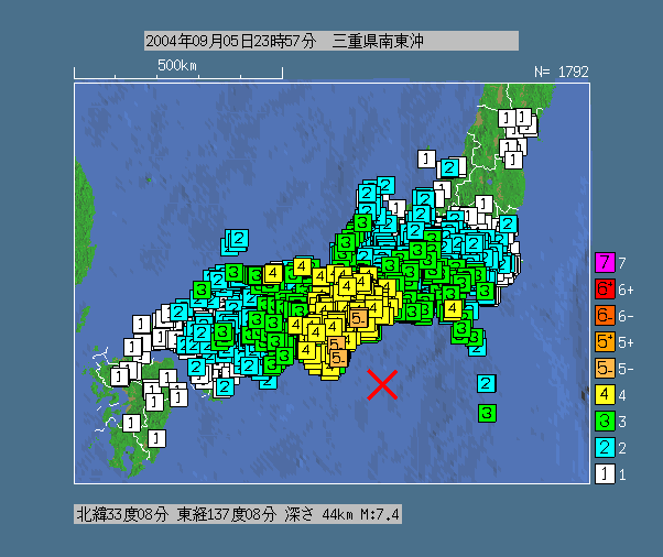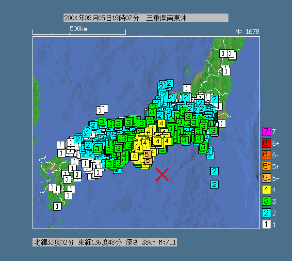 ↑↑↑↑↑2004年9月に同日に2回連続で発生した地震
